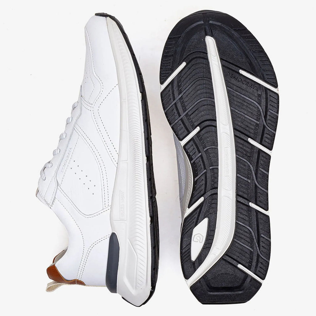 O tênis de Couro Branco Denim Brad Ultra Light é um produto tecnológico e moderno. Confeccionado em couro na cor branco, o fechamento é em cadarço de amarrar, bico arredondado e o cabedal possui recortes no couro. O solado é composto de EVA, detalhe da logo da marca na lateral, língua e no solado. Contém puxador no calcanhar e a palmilha é feita de P.U. Este modelo contém a tecnologia Ultra Light.
